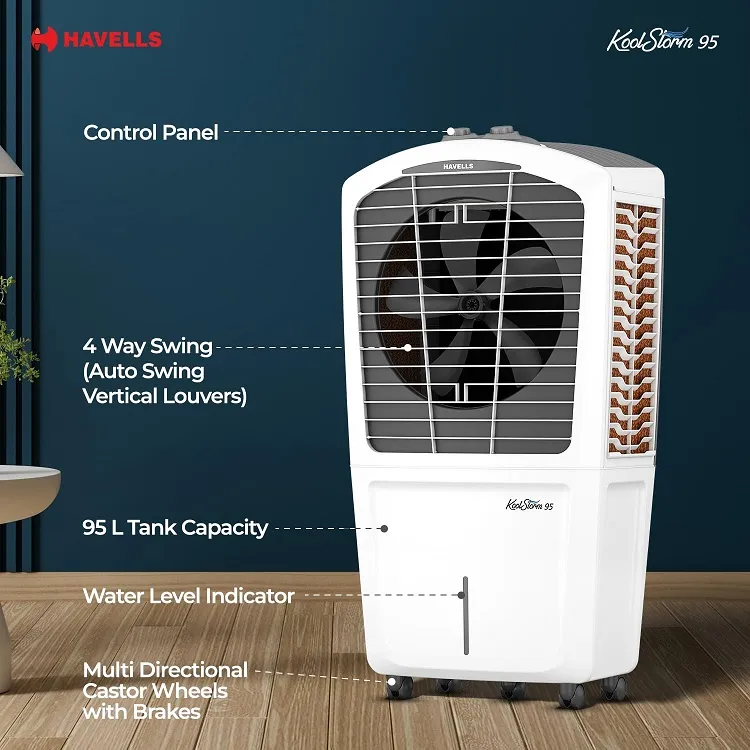 - Large Size Tank Capacity: 95 L large water tank ensures prolonged cooling performance, minimizing the need for constant water refills.